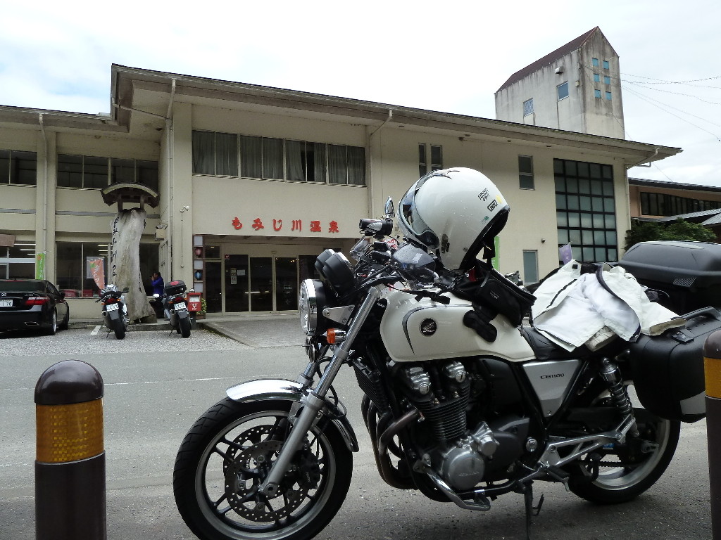 その後進につれ雨脚は弱くなり降ったり止んだりの中を空いたR195の気持ちの良いコーナーを楽しみながら道の駅もみじ川温泉に14時50分到着、雨具をしまう