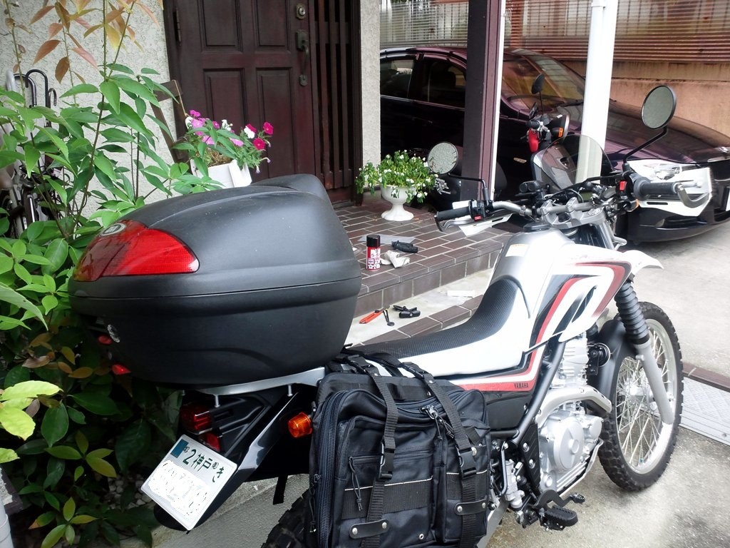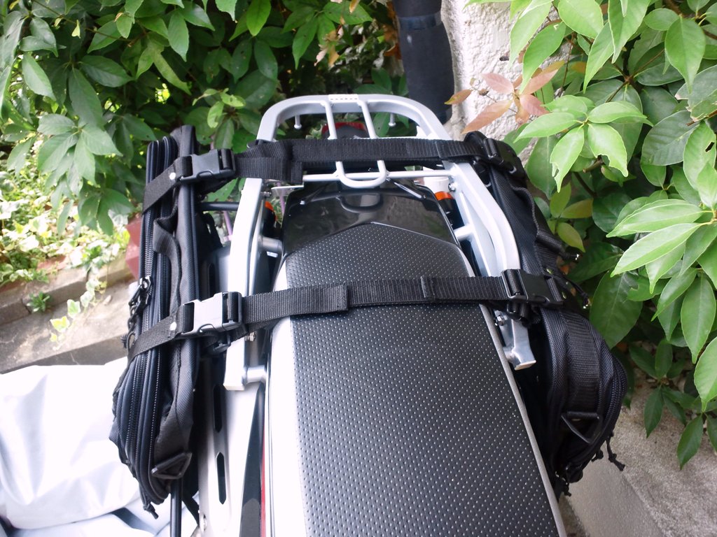 リヤにはキャンプツーリング用のサイドバッグとトップケース