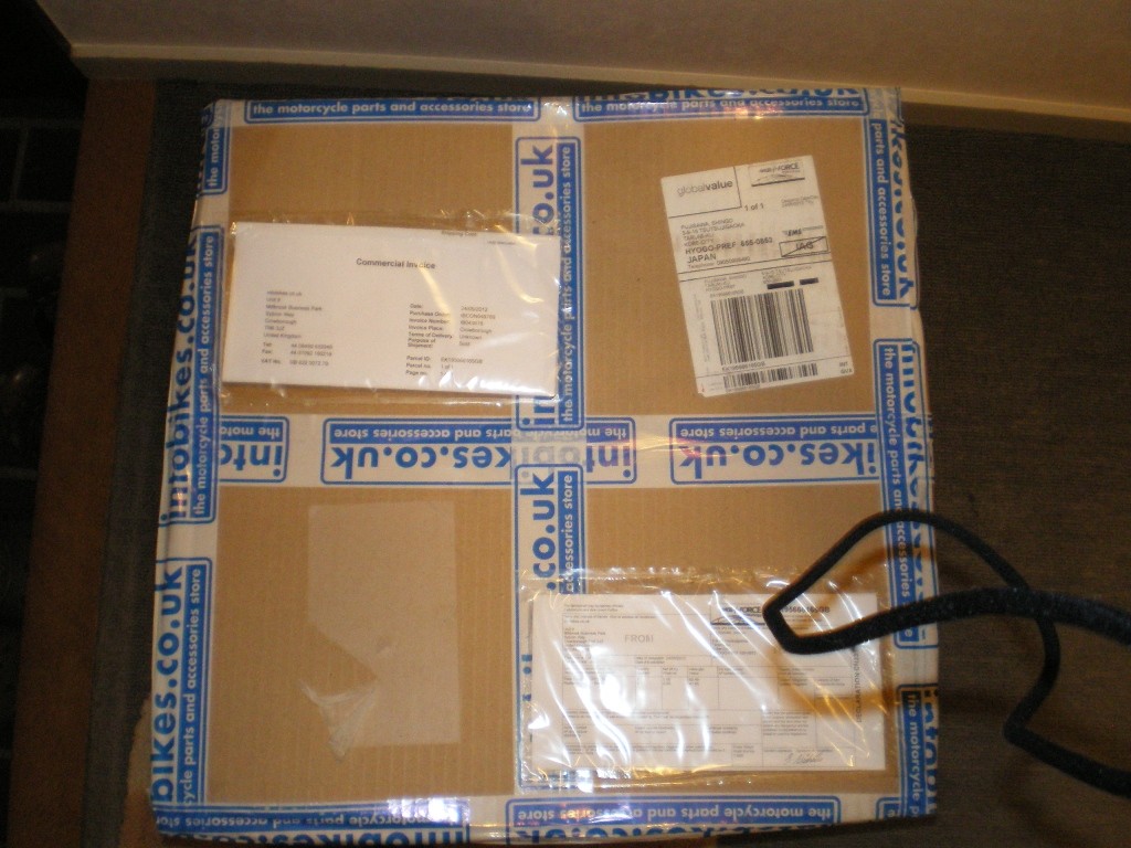 2012-05-29 待っていた物がやっと! ばいくのこと 5月6日にネットでプチッとしてから待つこと23日 今夜19時やっと日本郵便の方が届けてくださいました エゲレスのインフォバイクスさんからのお荷物です infobikesさんと言えばあれとこれです ギンちゃんの検閲も無事終わって一安心です これとこれでした つや消しブラックに塗ろうかカーボン調シールでも貼ろうか 週末まで悩み続けます