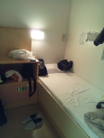 乗船後夜食の手作り弁当を食べ就寝