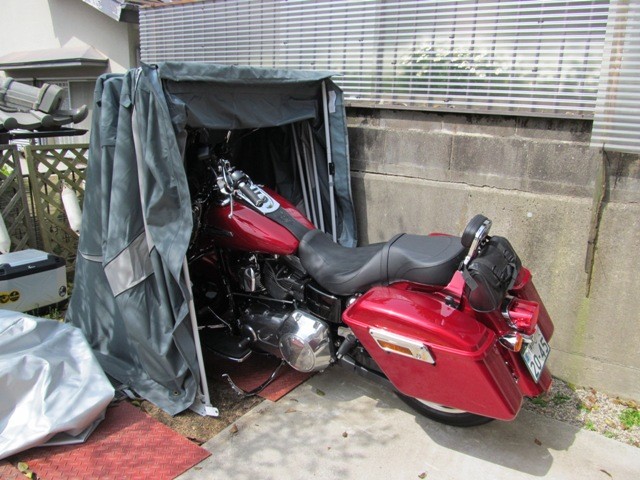家の車庫では車優先でFLDとNC700Xは完全に邪魔者扱いお尻ちょっとしかカーポートの下には入ってないセローなんかは玄関脇に追いやられてるそんな可哀想な保管状況なんで思い切ってバイクシェルター買っちゃいましたFLDがギリギリ収まったのでNC700X用も買っちゃおう
